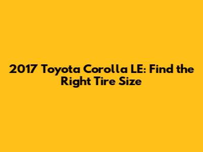 Choosing the right tire size for your 2017 Toyota Corolla LE is crucial for maintaining optimal performance, safety, and fuel efficiency. Many factors influence the correct tire size, and it's important to get it right. This article dives into everything you need to know about the 2017 Toyota Corolla LE tire size, ensuring you make the best choice for your vehicle. We'll cover the manufacturer's recommended size, how to find it, and what happens if you deviate from it. Whether you're replacing worn tires or considering an upgrade, this guide provides the information you need to make an informed decision and keep your Corolla running smoothly. Let's get started and explore the world of tire sizes for your trusty 2017 Corolla LE.