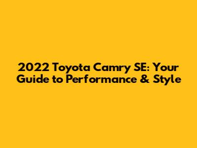 2022 Toyota Camry SE: Your Guide To Performance & Style