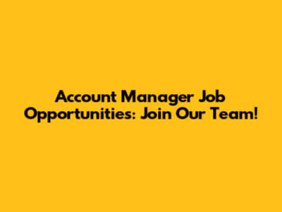Account Manager Job Opportunities: Join Our Team!
