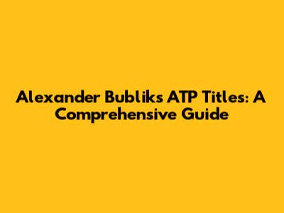 Alexander Bublik's ATP Titles: A Comprehensive Guide