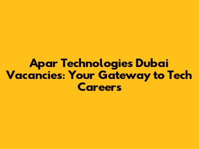 Apar Technologies Dubai: Your Job Search Starts Here!