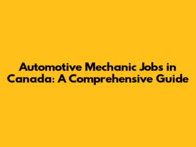Automotive Mechanic Jobs In Canada: A Comprehensive Guide