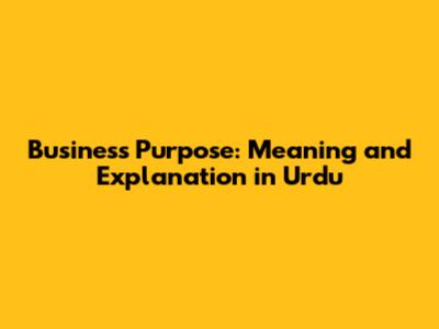 Business Purpose: Meaning And Explanation In Urdu
