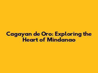 Cagayan De Oro: Exploring The Heart Of Mindanao