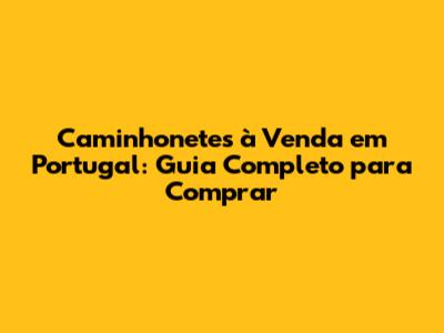Caminhonetes À Venda Em Portugal: Guia Completo Para Comprar