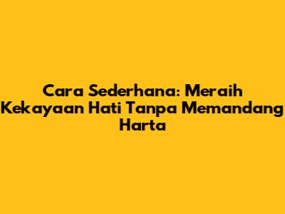 Cara Sederhana: Meraih Kekayaan Hati Tanpa Memandang Harta