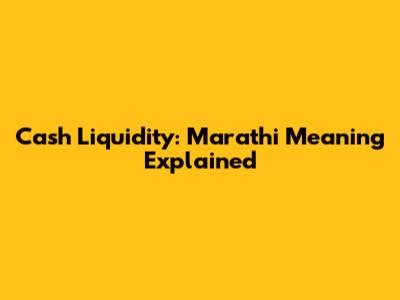 Cash Liquidity: Marathi Meaning Explained