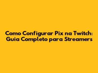 Como Configurar Pix Na Twitch: Guia Completo Para Streamers