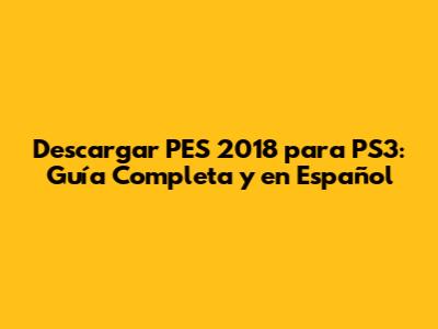 Descargar PES 2018 Para PS3: Guía Completa En Español