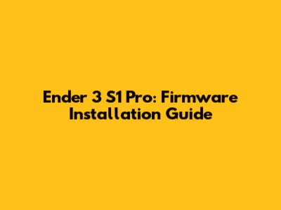 Ender 3 S1 Pro: Firmware Installation Guide