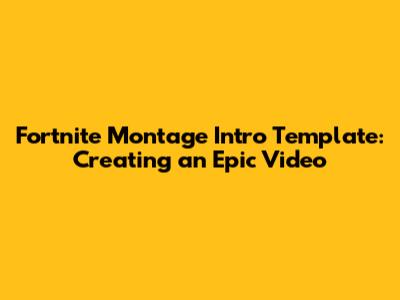 Fortnite Montage Intro: Create An Epic Video!