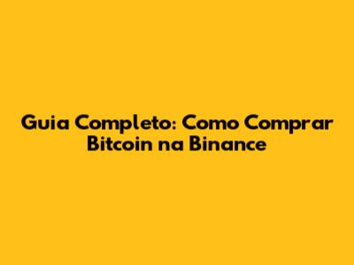 Guia Completo: Como Comprar Bitcoin Na Binance