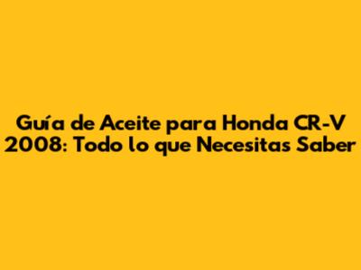 Guía De Aceite Para Honda CR-V 2008: Todo Lo Que Necesitas Saber