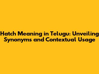 Hatch Meaning In Telugu: Exploring Synonyms And Nuances