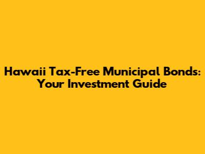 Hey everyone, let's dive into something that could be a game-changer for your investment portfolio: Hawaii tax-free municipal bonds. These bonds are a sweet deal for those looking to grow their wealth while keeping Uncle Sam at bay. If you're a Hawaii resident or just someone looking to diversify your investments, this guide is your go-to resource. We'll break down everything you need to know, from how these bonds work to the potential benefits and risks. So, grab a coffee, and let's get started on this exciting journey into the world of tax-advantaged investing!