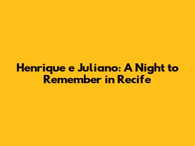 Hey music lovers! Get ready to dive into the vibrant world of sertanejo music as we explore the electrifying Henrique e Juliano show in Recife! This isn't just any concert; it's an experience, a night filled with passion, rhythm, and unforgettable memories. If you're a fan of the dynamic duo, or even just curious about the Brazilian music scene, you're in for a treat. We'll explore everything from the atmosphere of the show to the most memorable performances, making sure you feel like you were right there with the crowd. So, grab your virtual tickets, and let's get started.