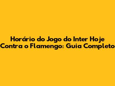 Palavras-chave: Horário do jogo, Inter, Internacional, Flamengo, onde assistir, futebol, partida, jogo ao vivo, campeonato, análise, previsão, expectativas, dicas, torcida, emoção. Prepare-se para um grande espetáculo!