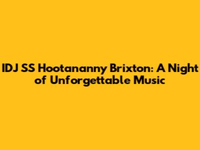 IDJ SS Hootananny Brixton: A Night Of Unforgettable Music