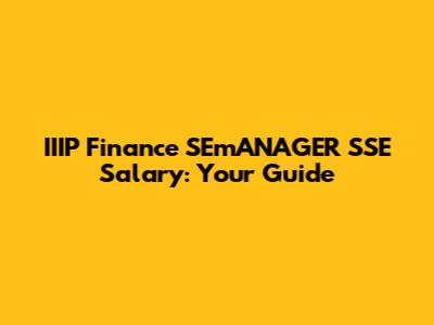 IIIP Finance SEmANAGER SSE Salary: What You Need To Know