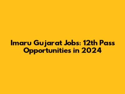 Imaru Gujarat Jobs: 12th Pass Opportunities In 2024