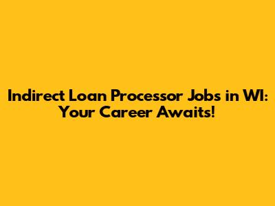 Indirect Loan Processor Jobs In WI: Your Career Awaits!