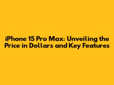 IPhone 15 Pro Max: Price In Dollars & Key Features