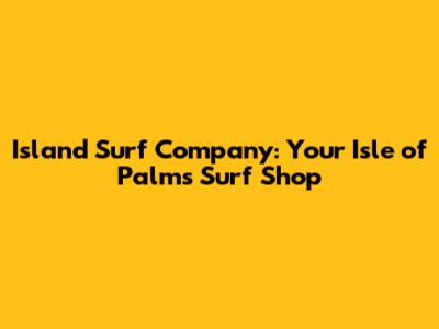 Hey guys! If you're planning a trip to the Isle of Palms and dreaming of catching some waves, or just soaking up the sun, there's one place you absolutely need to know about: Island Surf Company. Seriously, this isn't just your average surf shop; it's a hub for everything surf-related and a vital part of the local community. Let's dive into why Island Surf Company is the spot for all your surfing needs on Isle of Palms.
