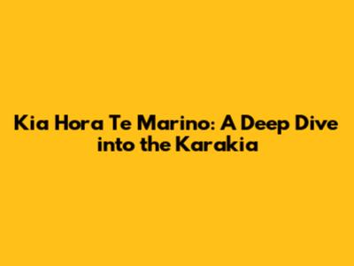 Kia Hora Te Marino: A Deep Dive Into The Karakia