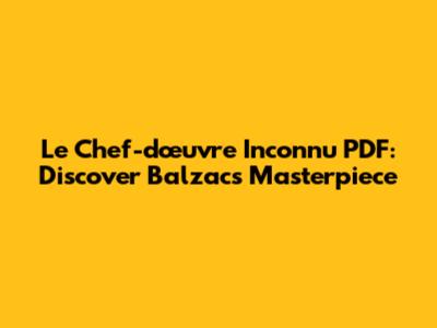 Le Chef-d'œuvre Inconnu PDF: Discover Balzac's Masterpiece