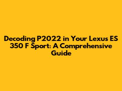 The Impact of P2022 on Your Lexus ES 350 F Sport