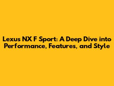 Lexus NX F Sport: Performance, Features, And Style