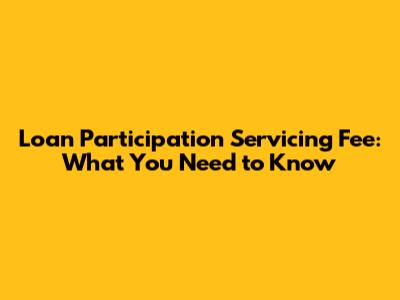 Loan Participation Servicing Fee: What You Need To Know