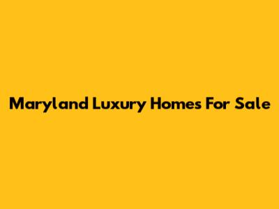 Maryland Luxury Homes For Sale