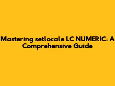 Mastering Setlocale LC_NUMERIC: A Comprehensive Guide