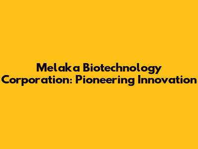 Melaka Biotechnology Corp: Pioneering Innovation