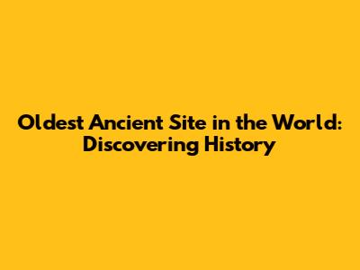 Oldest Ancient Site In The World: Discovering History