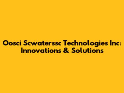 Oosci Scwaterssc Technologies Inc: Innovations & Solutions