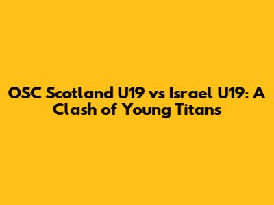 OSC Scotland U19 Vs Israel U19: Match Preview & Analysis