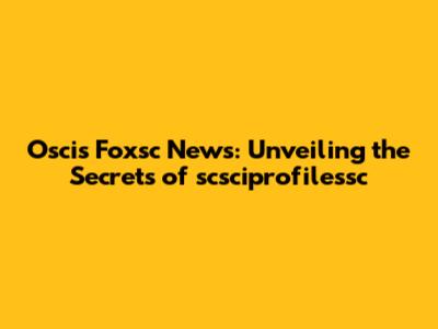 Oscis Foxsc News: Unveiling The Secrets Of Scsciprofilessc