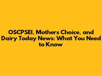 OSCPSEI, Mother's Choice, And Dairy Today News