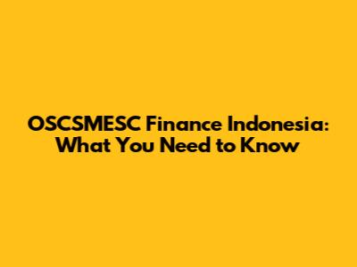 OSCSMESC Finance Indonesia: What You Need To Know