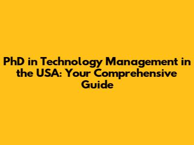 PhD In Technology Management In The USA: Your Comprehensive Guide