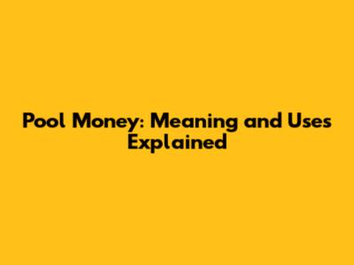 Pool Money: Meaning And Uses Explained