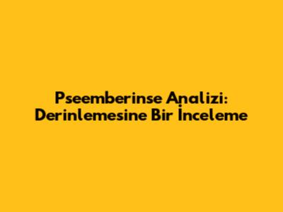 Pseemberinse Analizi: Nedir, Nasıl Yapılır, Önemi