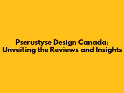 Pserustyse Design: Reviews And Insights For Canadians