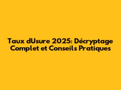 Taux D'Usure 2025: Votre Guide Complet Et Actualisé