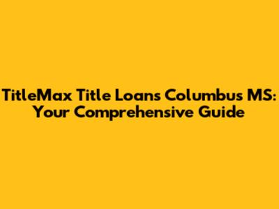 TitleMax Title Loans In Columbus, MS: Your Guide