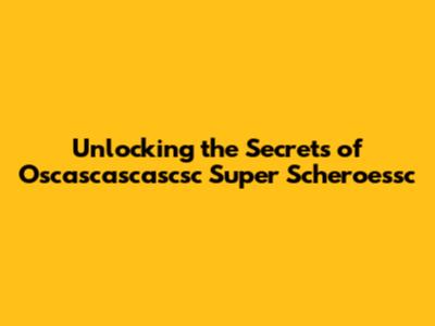 Unlocking The Secrets Of Oscascascascsc Super Scheroessc