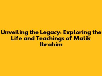 Unveiling The Legacy: Exploring The Life And Teachings Of Malik Ibrahim