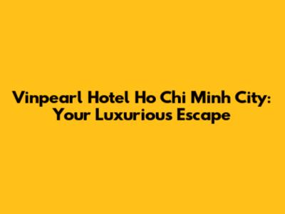 Vinpearl Hotel: Your Luxurious Escape In Ho Chi Minh City